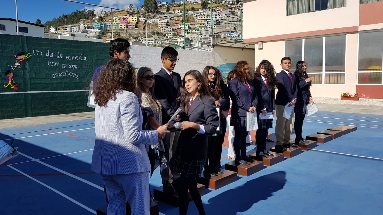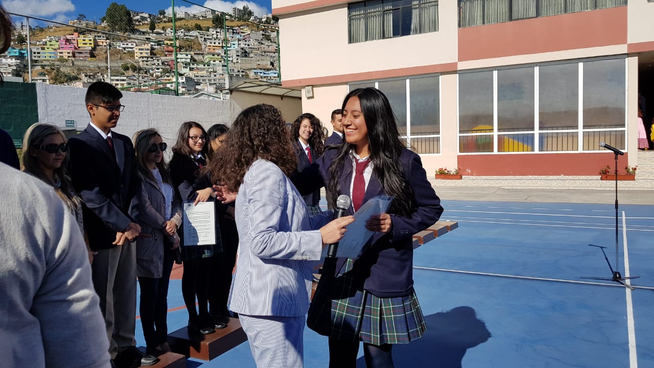 En este día se reconoció la Excelencia Académica con la Proclamación de Abanderado, Portaestandartes y Escoltas del año lectivo 2018-2019.